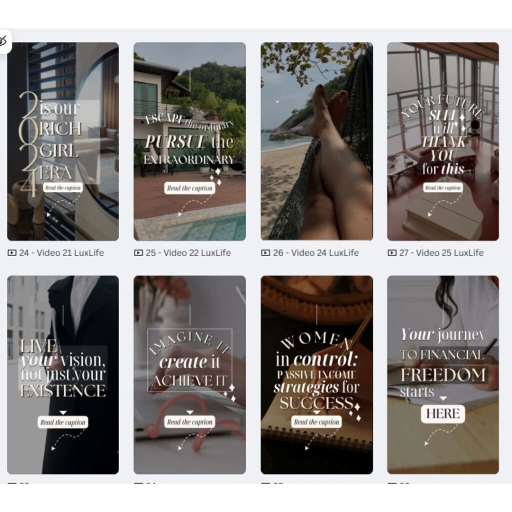 The 60 Faceless Luxury Reels offer a scalable business opportunity, allowing you to resell these high-demand templates to influencers, brands, or businesses in luxury niches, keeping 100% of the profits with Master Resell Rights. Customize the reels in Canva to create stunning social media content that attracts high-end followers, saving you hours of design work and costly software. Sell on platforms like Etsy or Gumroad, where resellers often earn $500-$2,000 in their first month, or use the reels to drive traffic to your own offers. This versatile product lets you build a brand or income stream with minimal effort, leveraging the booming demand for premium video content.
