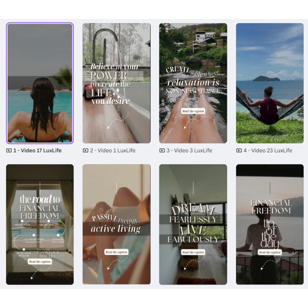 The 60 Faceless Luxury Reels offer a scalable business opportunity, allowing you to resell these high-demand templates to influencers, brands, or businesses in luxury niches, keeping 100% of the profits with Master Resell Rights. Customize the reels in Canva to create stunning social media content that attracts high-end followers, saving you hours of design work and costly software. Sell on platforms like Etsy or Gumroad, where resellers often earn $500-$2,000 in their first month, or use the reels to drive traffic to your own offers. This versatile product lets you build a brand or income stream with minimal effort, leveraging the booming demand for premium video content.