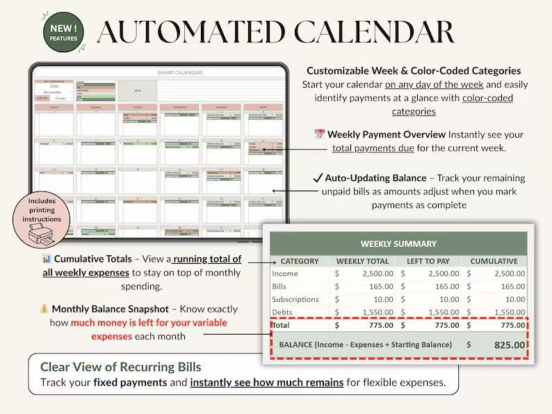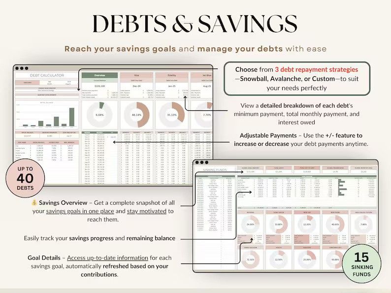 Designed to take the hassle out of money management, this dynamic system features 28 meticulously crafted tabs that seamlessly handle your monthly budget, debt tracking, bill calendar, and savings goals.