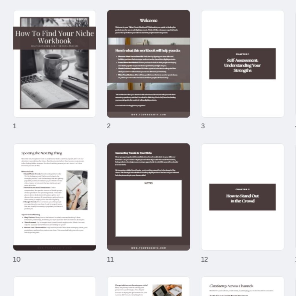 A PDF with a Canva link to a 22-page editable workbook, “How To Find Your Niche – Workbook,” guiding you to discover your skills, analyze markets, evaluate competitors, and choose a profitable niche. With Master Resell Rights (MRR), customize, download, and sell it, keeping 100% of profits. Delivered instantly via secure email, it’s perfect for launching or reselling in 2025’s booming digital market, unlocking your entrepreneurial potential.