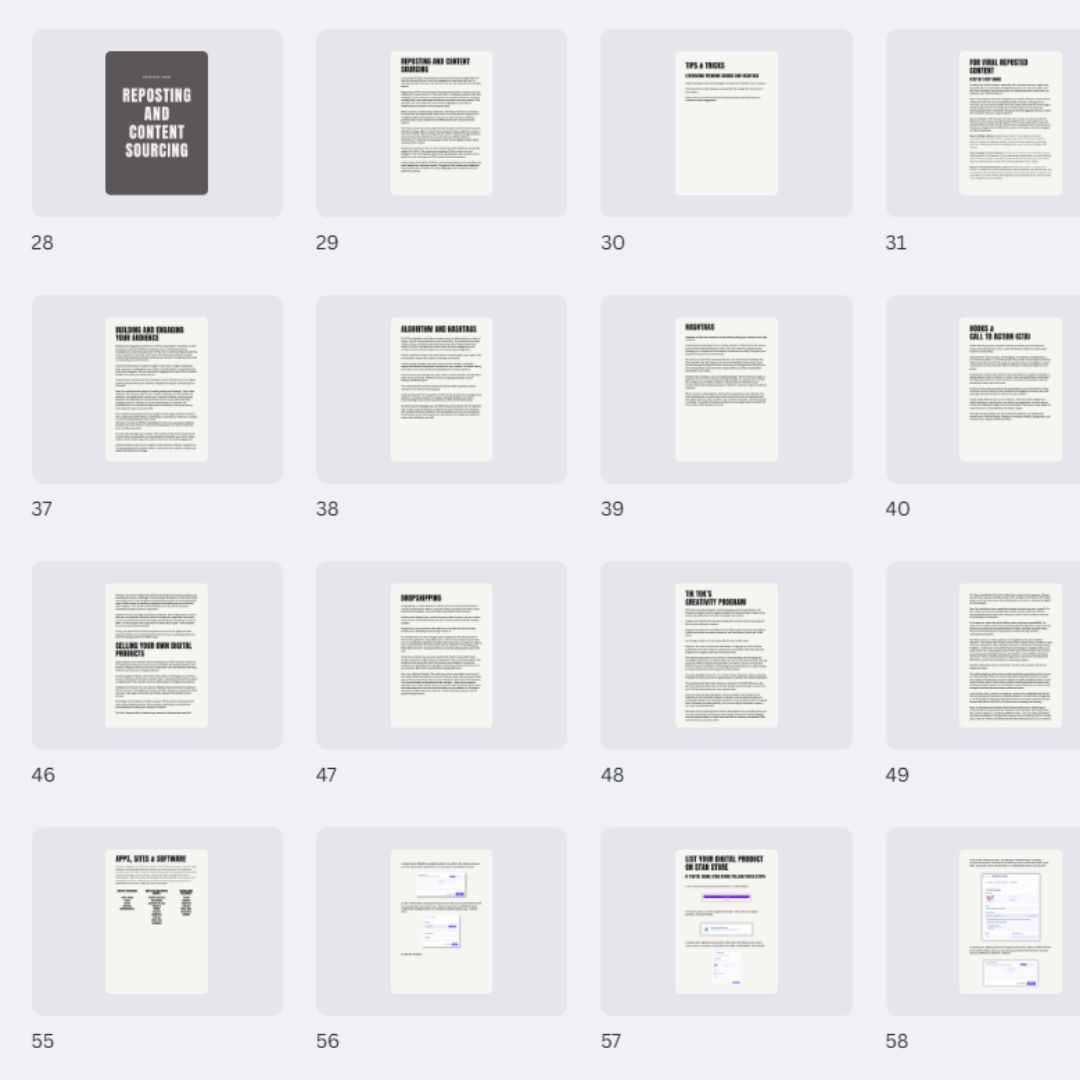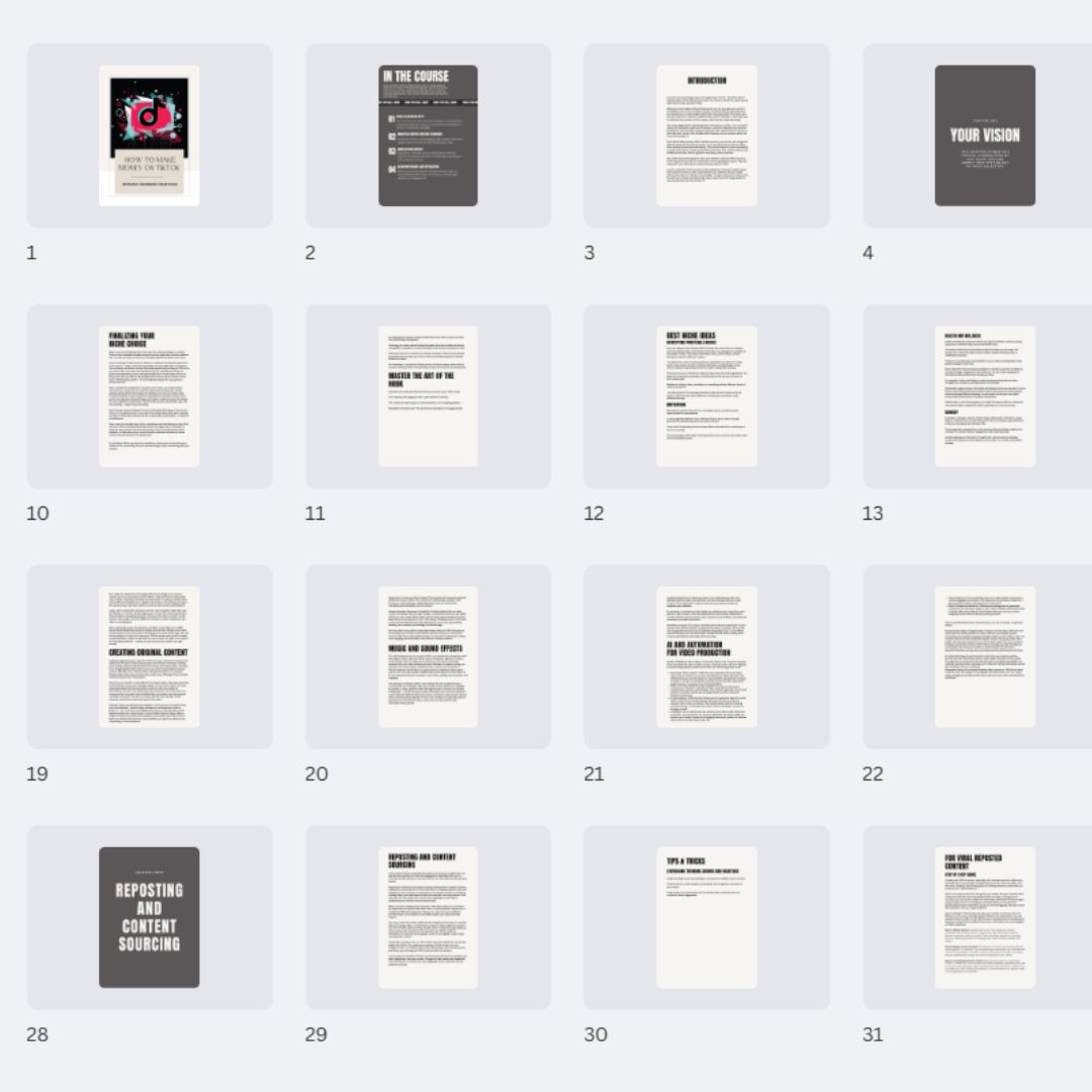 A PDF with a Canva link to a 114-page editable workbook, “How to Make Money on TikTok,” teaching beginners to profit with faceless accounts. Covering in-depth niche selection, innovative content creation, monetization mastery, and algorithm optimization, it includes Master Resell Rights (MRR) to customize, download as a PDF, and sell, keeping 100% of profits. Delivered instantly via secure email, it’s perfect for creating or reselling in the digital market.