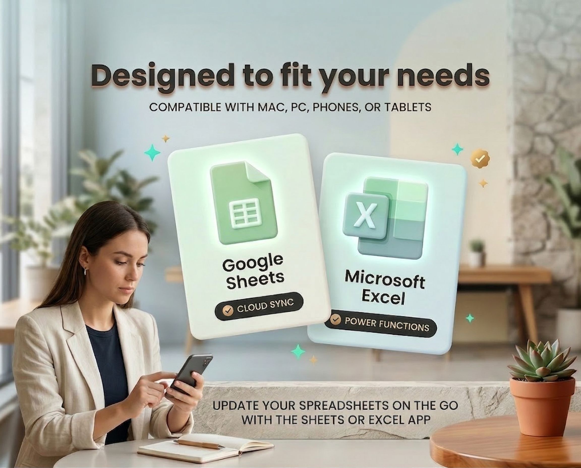 FEATURES: • Works with any currency – just input in one cell • Use one spreadsheet for multiple years • Automatic Calculations • Easy to use and understand • Beginner-friendly • Only includes the things you need • Sync the spreadsheet across multiple devices • Easily see your data in charts and tables