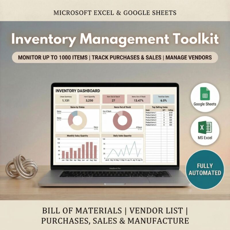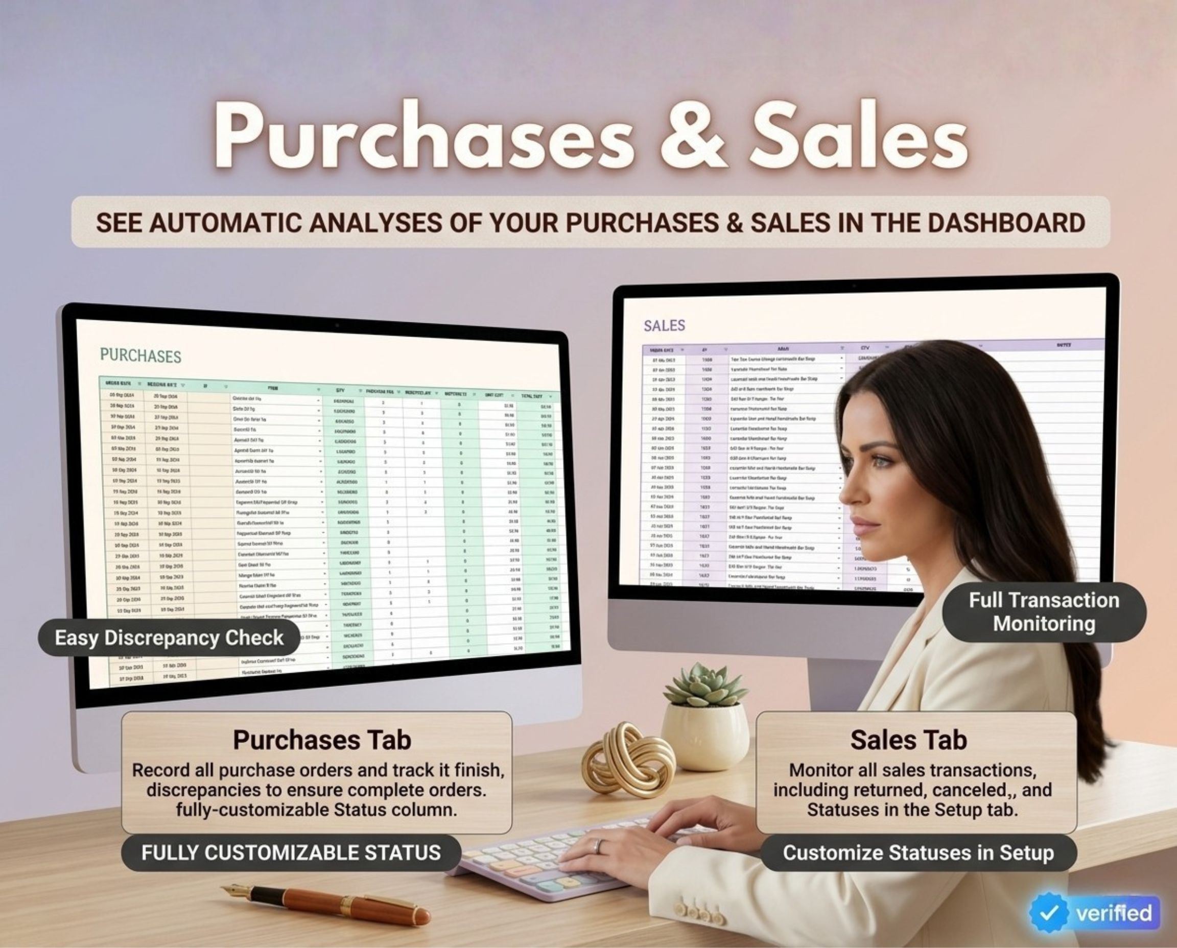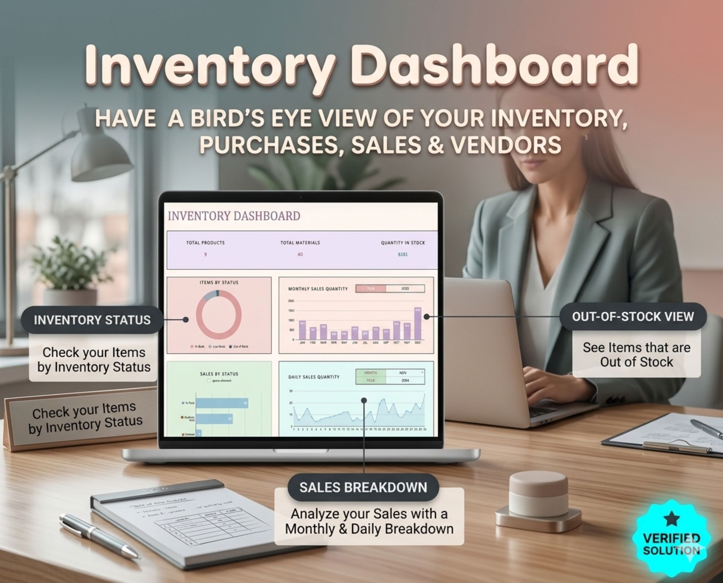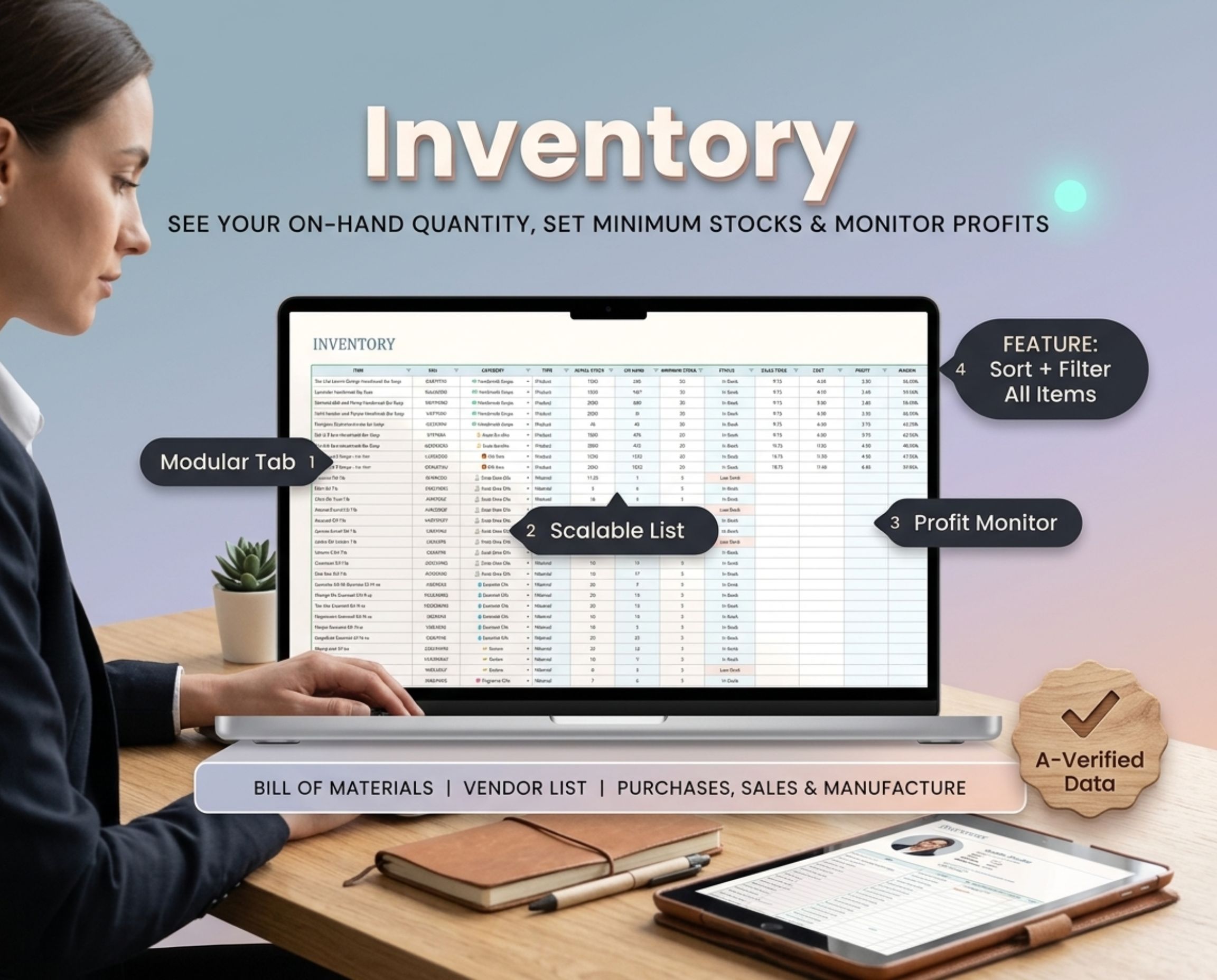 Easily update products, track materials used in manufacturing, and manage vendors while the fully automated dashboard turns your data into clear charts and insights. Simply enter your transactions and the spreadsheet handles the calculations for you, making it beginner friendly, visually clean, and effortless to use across multiple years and currencies in both Google Sheets and Microsoft Excel.